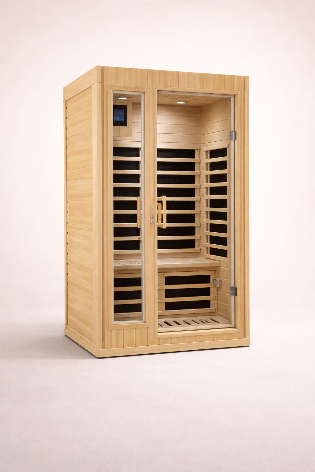Five far infrared heating panels provide steady, evenly distributed warmth throughout the cabin. With temperatures adjustable up to 60°C (140°F), each session can be tailored to personal comfort without harsh intensity.